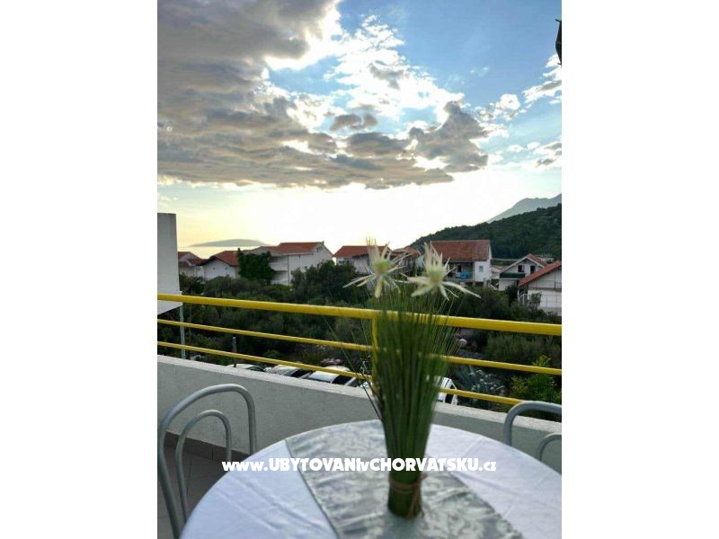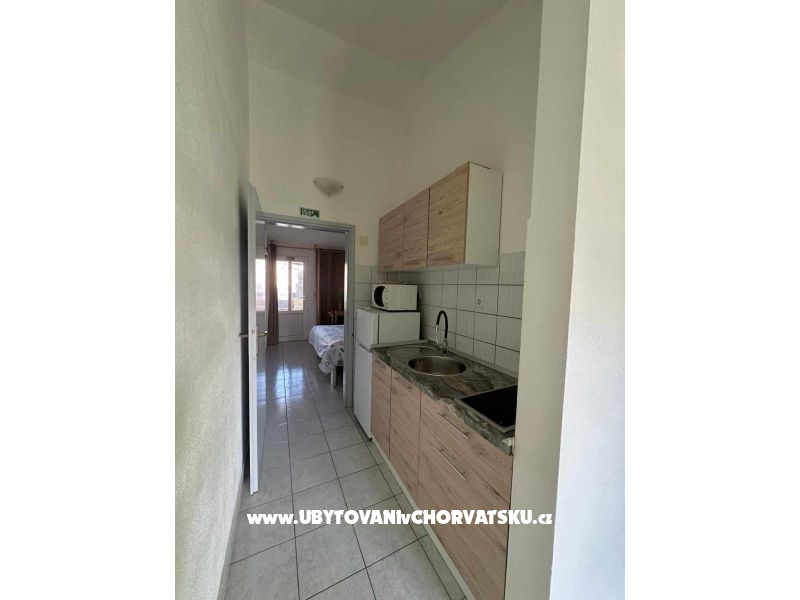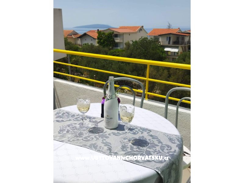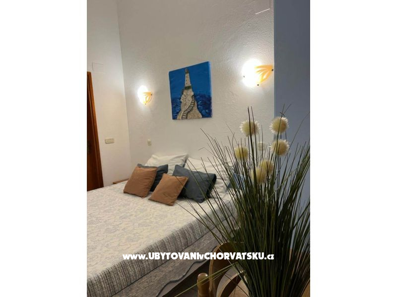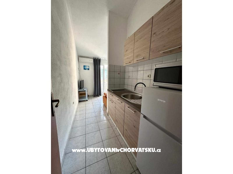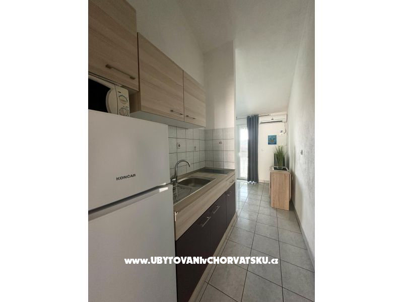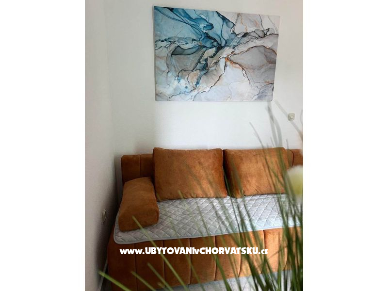 "2+2" - apartman za 2+2 osobe, ima dnevnu sobu (trosjed +TV-sat te wi-fi (bezicni)) s kuhinjom (sav pripadajuci pribor + kuhalo za vodu + mikrovalna), te odvojenu bračnu sobu, Wc i balkon