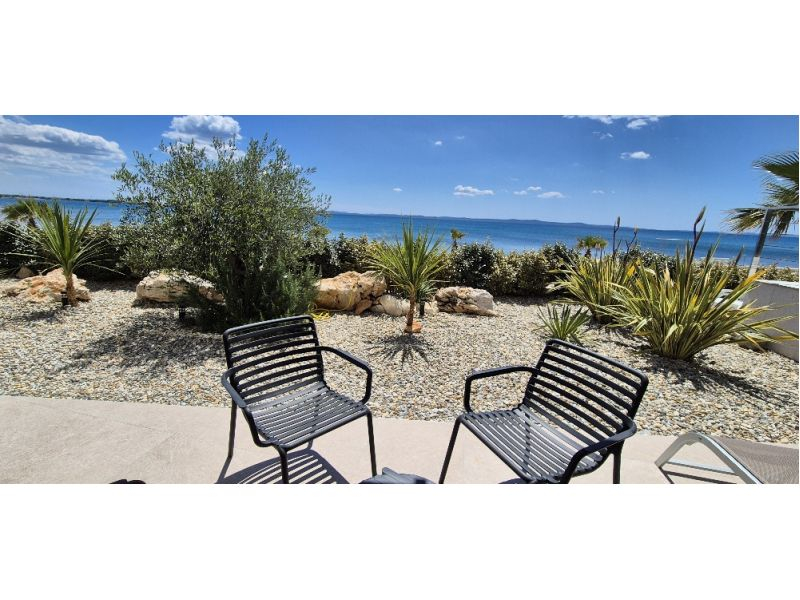 "D.D.Silver" - Apartmani uz more s bazenom na otoku Vir za 4 osobe. Nova kuća otvara sezonu 2026. 2 spavaće sobe, 2 kupaonice, moderna kuhinja, dnevni boravak, terasa s pogledom na more. Besplatan parking. Na raspolaganju: ležaljke, ručnici za bazen, kajak, SUP